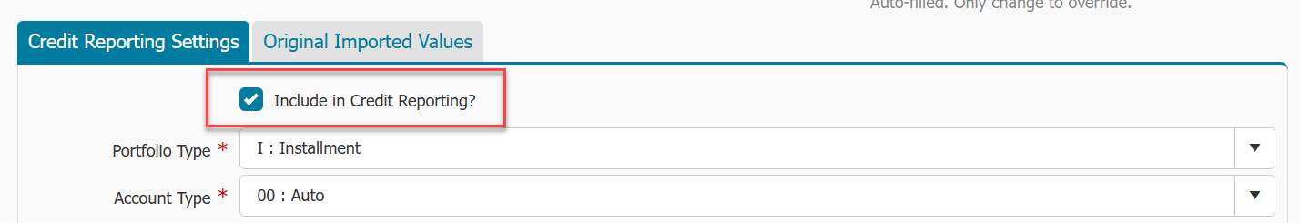 - Check the box to Include in Credit Reporting?