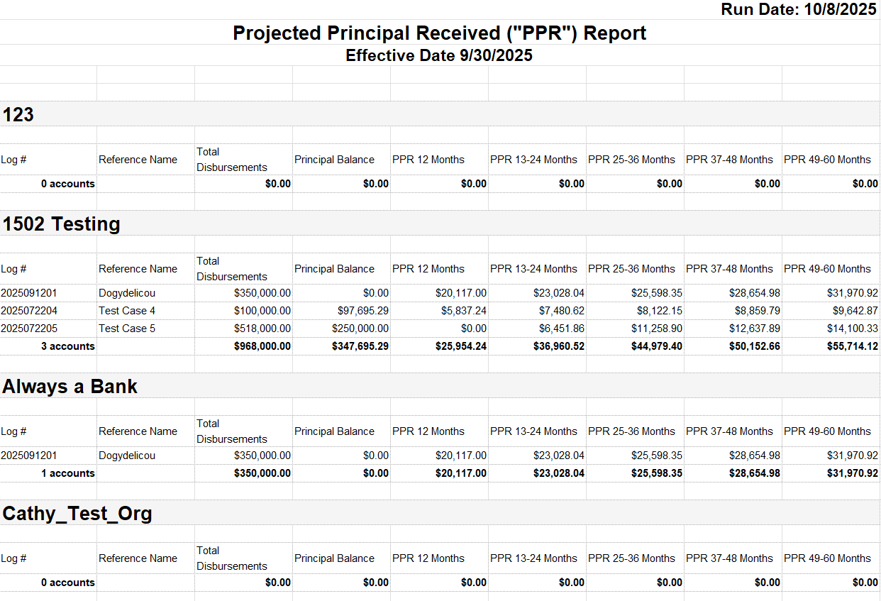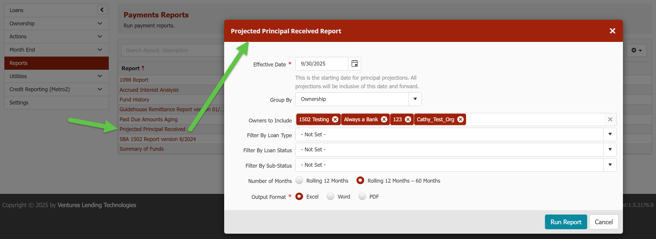 Ventures now has the ability to produce a report that projects principal to be received as of a certain effective date. The report data can: