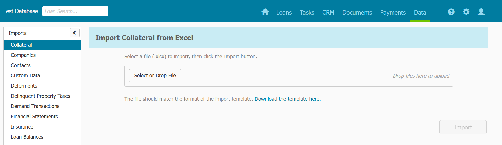 A new import has been added in our Data menu > Imports > Collateral submenu. Lenders will now be able to import collateral records, along with any associated information, into existing Ventures records.