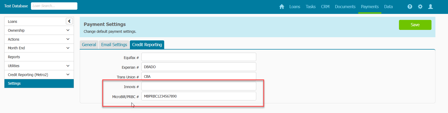 - If you have not set up payment accounts already to be included in credit reporting, set them up now using the instructions listed in KB article Payments Metro2 Credit Reporting Cheat Sheet.