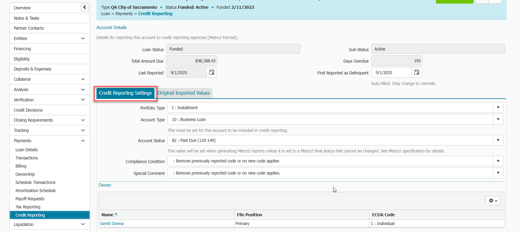 There have been several UI changes in the Payments > Credit Reporting menu within a loan record to make reporting choices clearer and more accurate.